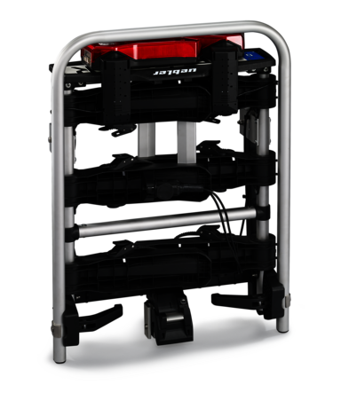 - Sistema de catraca para fixar com segurança as rodas ao trilho.